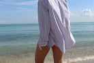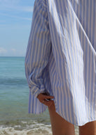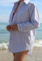 A new take on our essential button ups, this is sure to become a favorite in your wardrobe! This new design features a simple striped pattern and is available in blue and pink. Pair it with shorts and heels for an elevated look or casually with your go-to sneakers and tote bag for every day! Also great as a beach cover up!