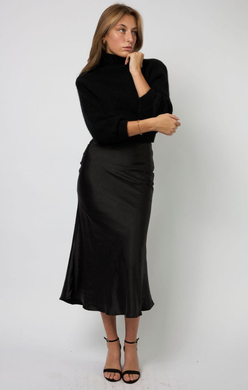 She Pretty Silk Skirt - Black