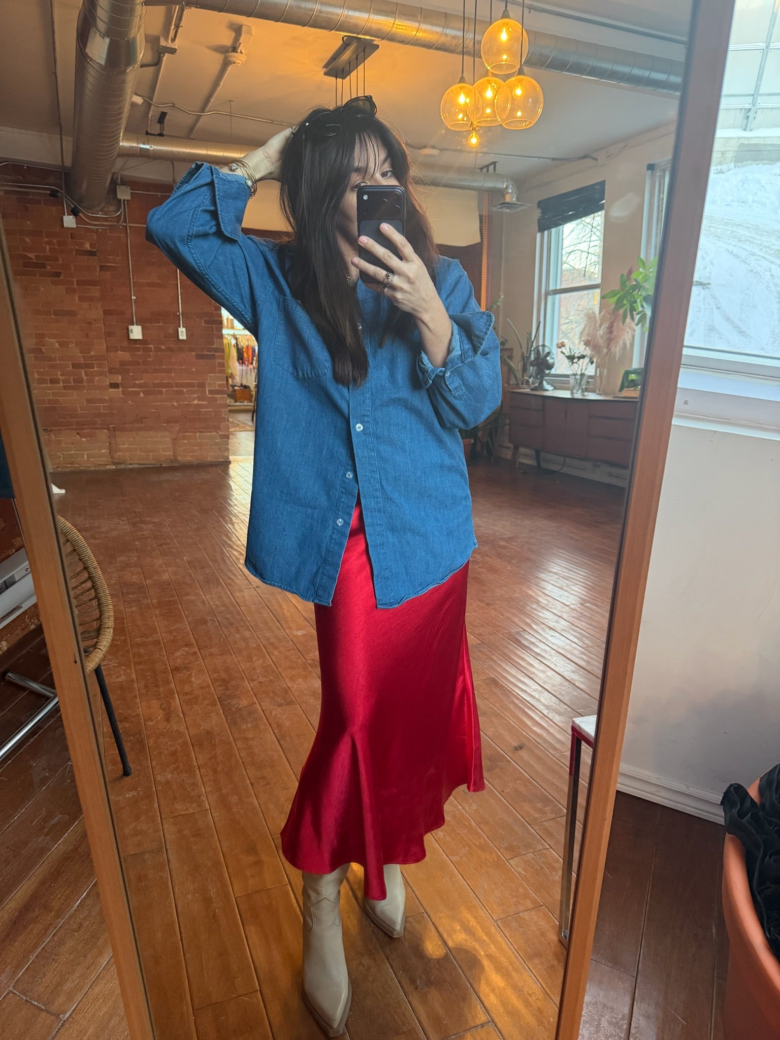 She Pretty Red Silk Skirt